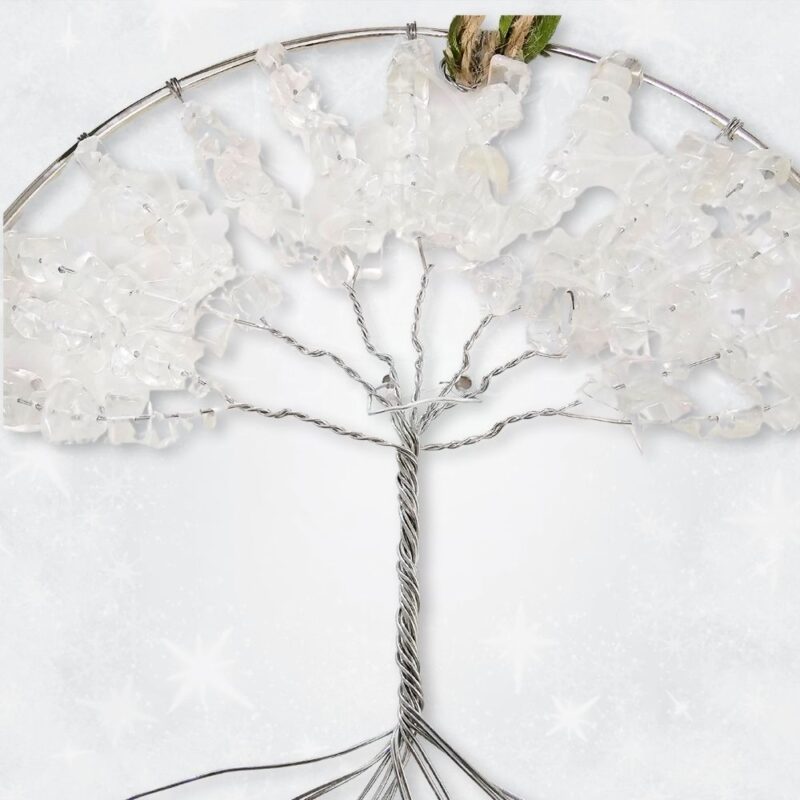 - Poder do Quartzo Cristal: O quartzo cristal é conhecido por suas propriedades curativas e amplificadoras de energia. Ao ser integrado no galhos da Árvore da Vida, esta peça torna-se numa fonte constante de energia pura, ajudando a equilibrar e revitalizar o seu ambiente.