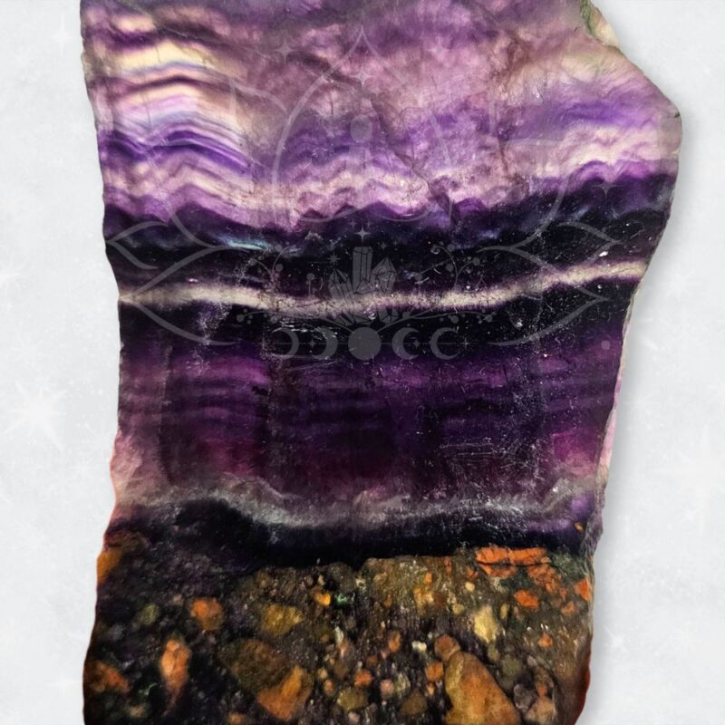 - Clareza Mental e Foco: A Fluorite Roxa é conhecida pela sua capacidade de promover a clareza mental. Utilize esta fatia durante períodos de estudo, meditação ou trabalho para aprimorar a concentração e alcançar estados mentais mais focados.