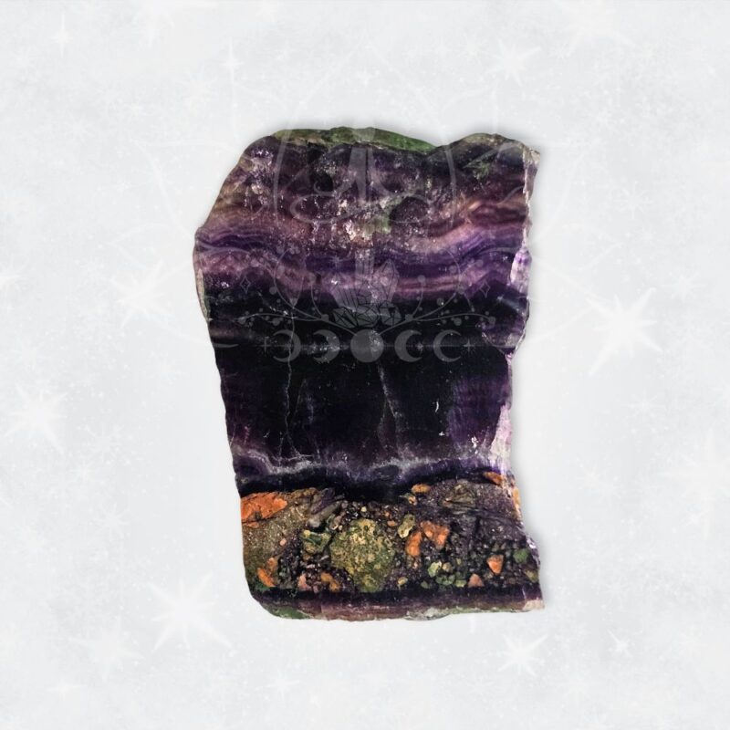 - Elevação Espiritual: A Fluorite Roxa é reconhecida por suas propriedades espirituais. Ao conectar-se com esta fatia, pode elevar sua consciência espiritual, abrir novos horizontes de entendimento e encontrar respostas nos recessos mais profundos da sua alma.