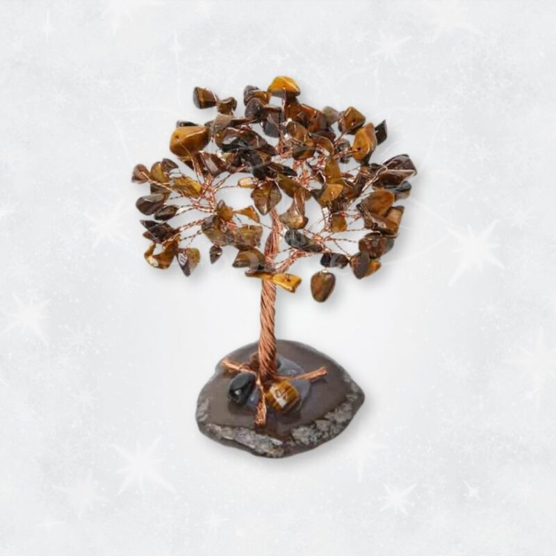 - Energia do Olho de Tigre: O olho de tigre é conhecido pelas suas propriedades protectoras e pela capacidade de inspirar coragem. Cada pedra incorporada nos ramos desta árvore é um amuleto de força e determinação.