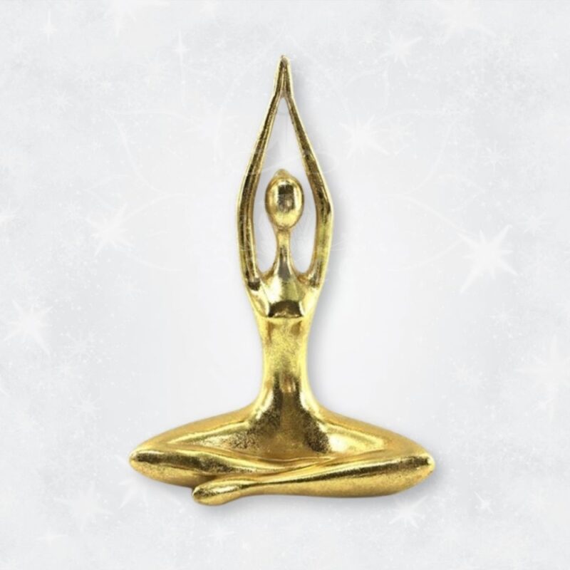 - Ilumine o Seu Ambiente: Acredita-se que o dourado traz energia positiva e iluminação. Adquira esta peça de yoga em resina dourada para infundir o seu espaço com uma aura de serenidade e elevação.