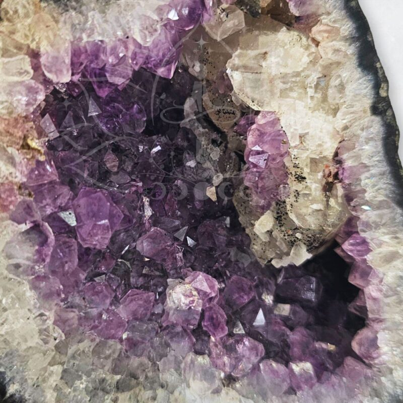 - Despertar da Consciência: Utilizada historicamente para expandir a consciência espiritual, a ametista presente neste geodo é um guia para jornadas místicas e meditações mais profundas.