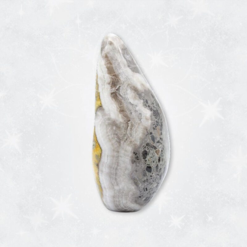 • Cura e Equilíbrio Energético: Acredita-se que o Jaspe Bumblebee tem propriedades de cura, ajudando a equilibrar as energias do corpo. Sua presença pode estimular os chakras e promover uma fluidez harmoniosa de energia, resultando num senso geral de bem-estar.
