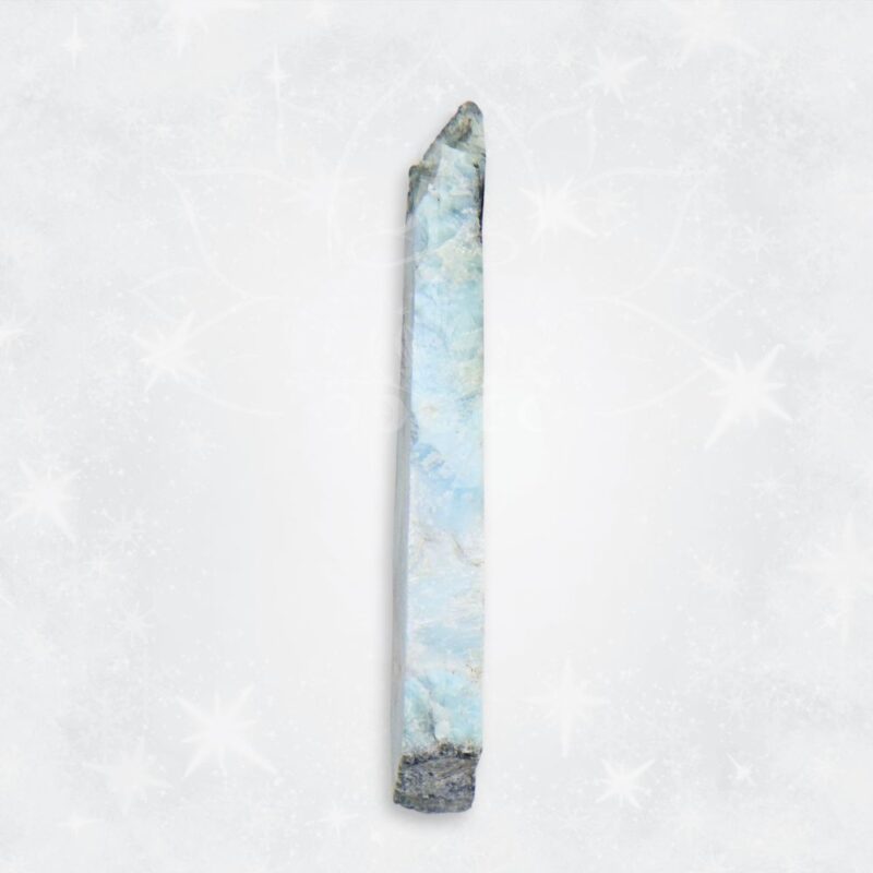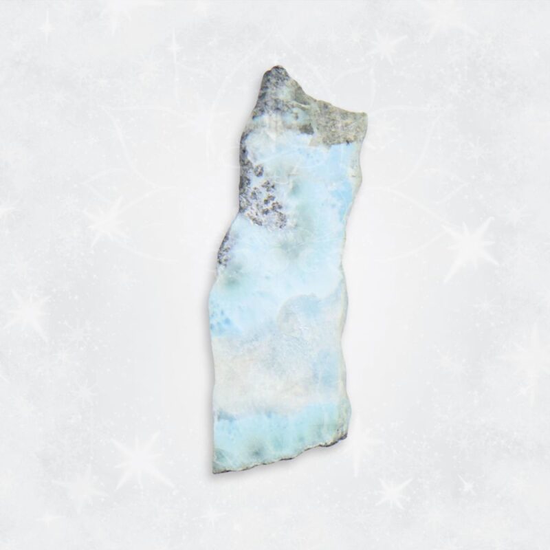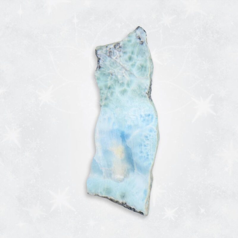 - Conexão com o Elemento Água: O Larimar é muitas vezes chamado de ‘Pedra do Caribe’ devido à sua associação com as águas cristalinas da região. Ter esta fatia é como ter um pedaço do oceano na sua casa, conectando-o às energias calmantes e revitalizantes do elemento água.