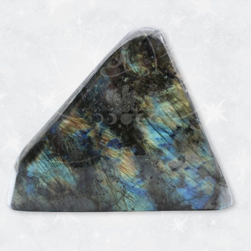 - Protecção Energética: Conhecida pelas suas propriedades de protecção, a Labradorite é considerada uma pedra guardiã. Acredita-se que ela cria um escudo protector contra energias indesejadas, dissolvendo influências negativas e fortalecendo a aura pessoal.