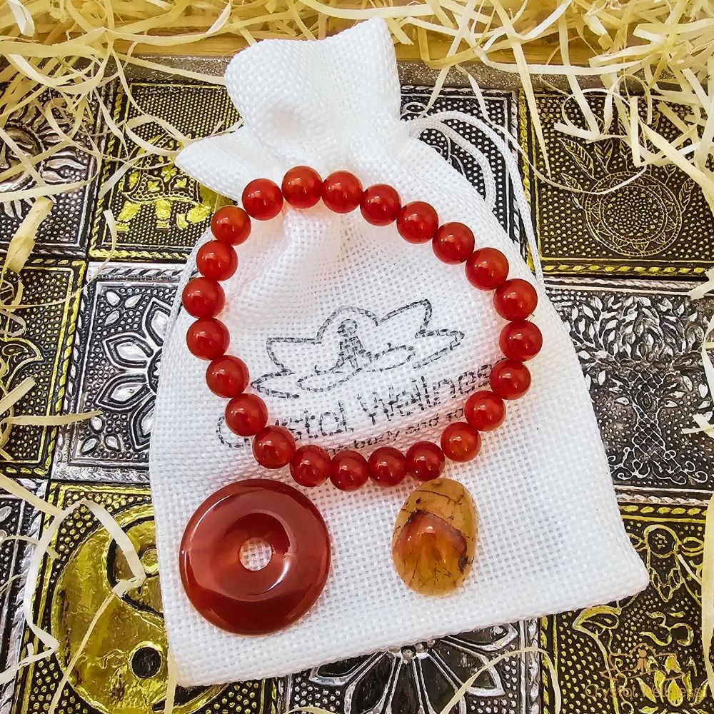 - Pulseira de Cornalina: A pulseira é adornada com contas autênticas de Cornalina, oferecendo uma experiência vibrante ao toque e um visual elegante.