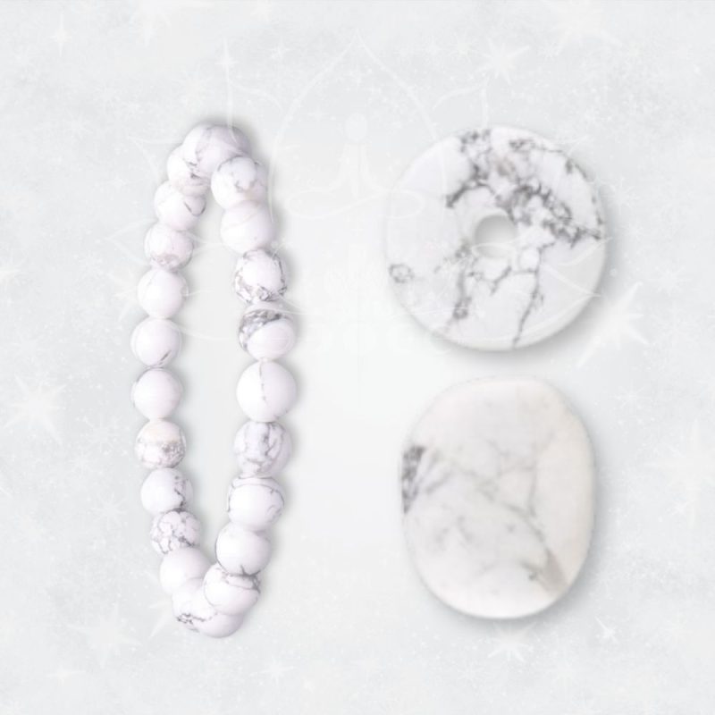 - Calmante e Relaxante: A Howlite é conhecida pela sua capacidade de acalmar a mente, reduzir o stress e promover um sono reparador.