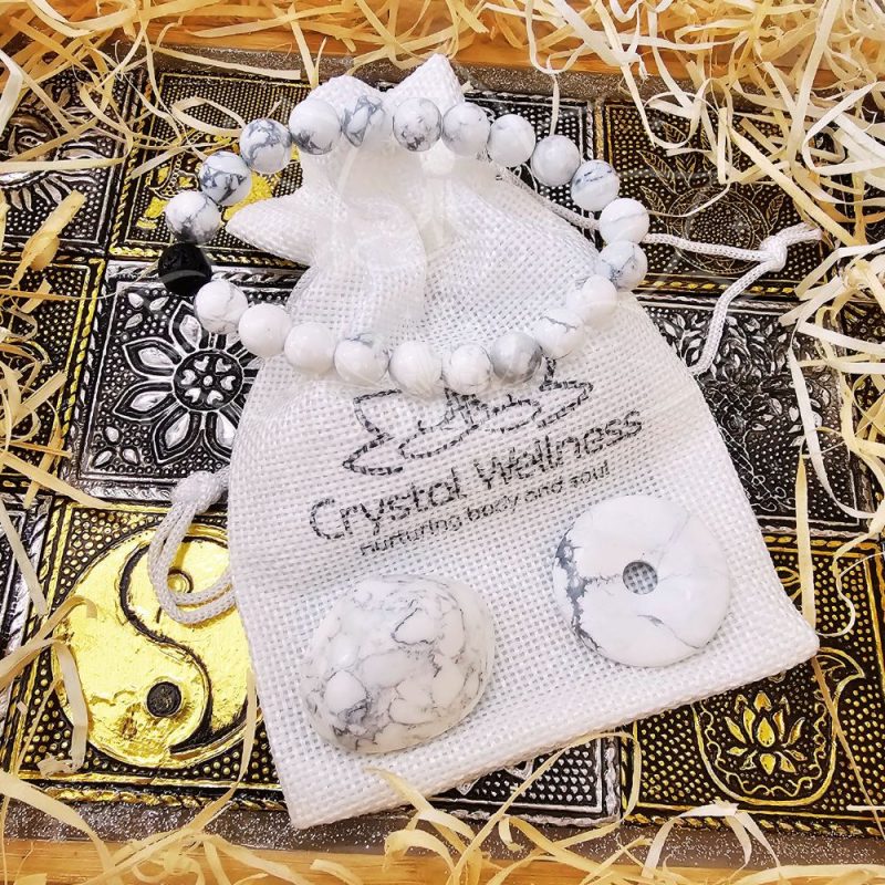 Descubra a serenidade da Howlite com este conjunto que inclui uma pulseira, um pendente e uma pedra rolada. Cada peça é cuidadosamente elaborada para transmitir as propriedades calmantes e tranquilizantes da Howlite, promovendo a paz interior, a comunicação serena e uma conexão mais profunda com a espiritualidade. Adorne-se com este conjunto e mergulhe na tranquilidade da Howlite.