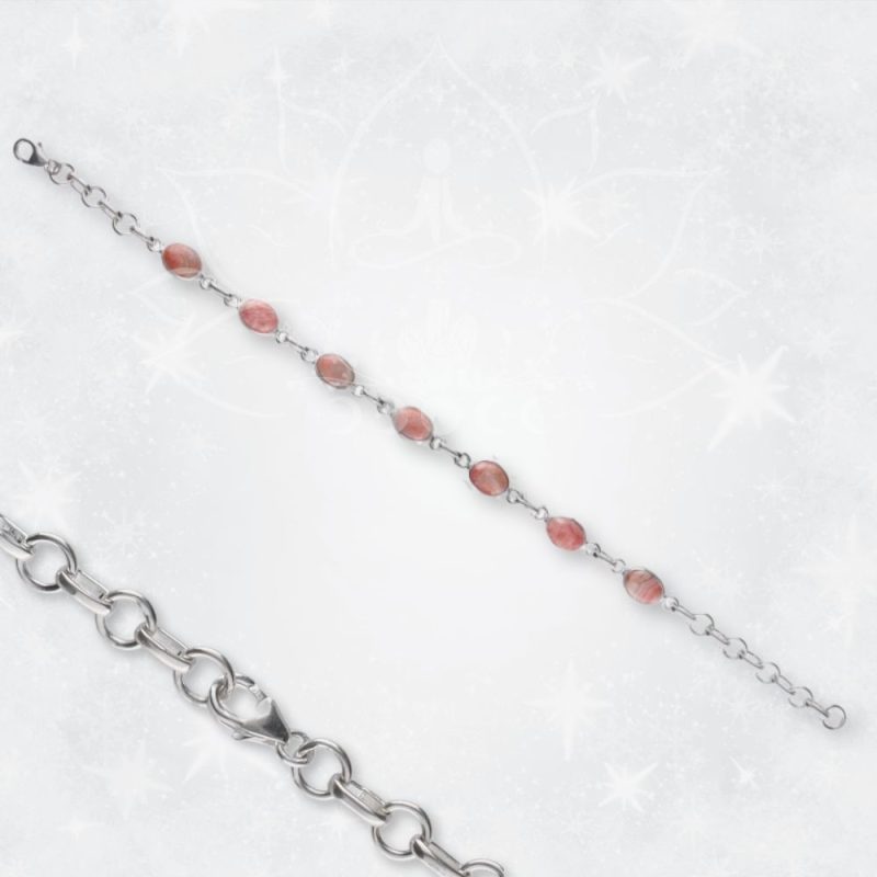 Pulseira de Rodocrosite em Prata Esterlina 925 – Beleza Rosa e Elegância Duradoura