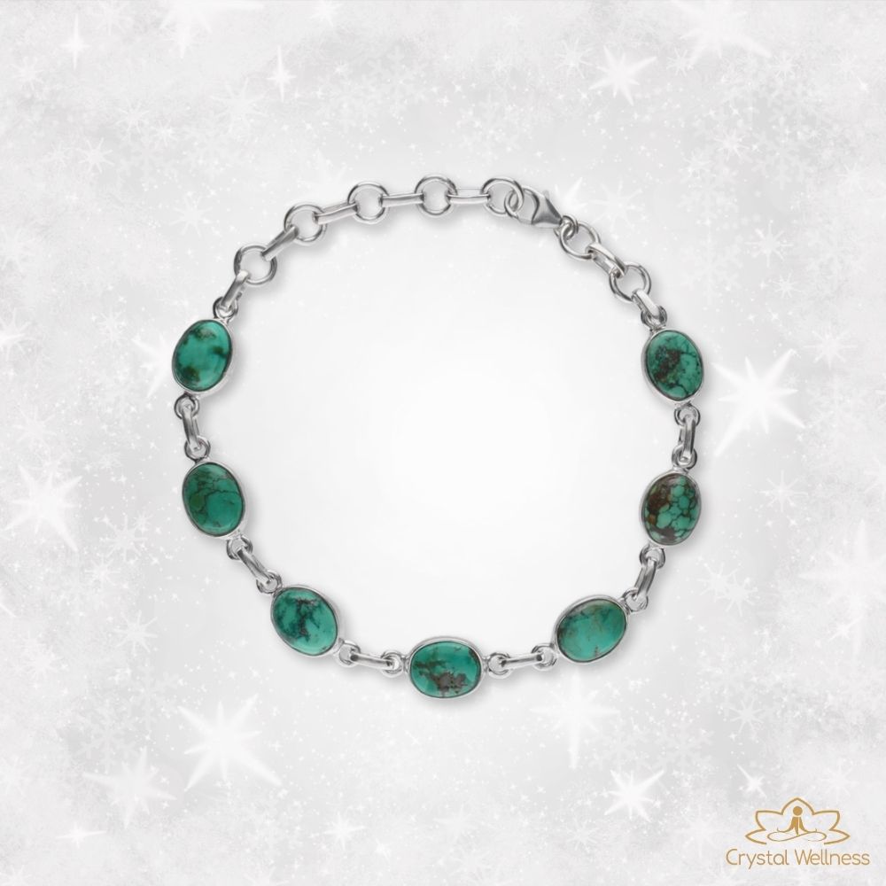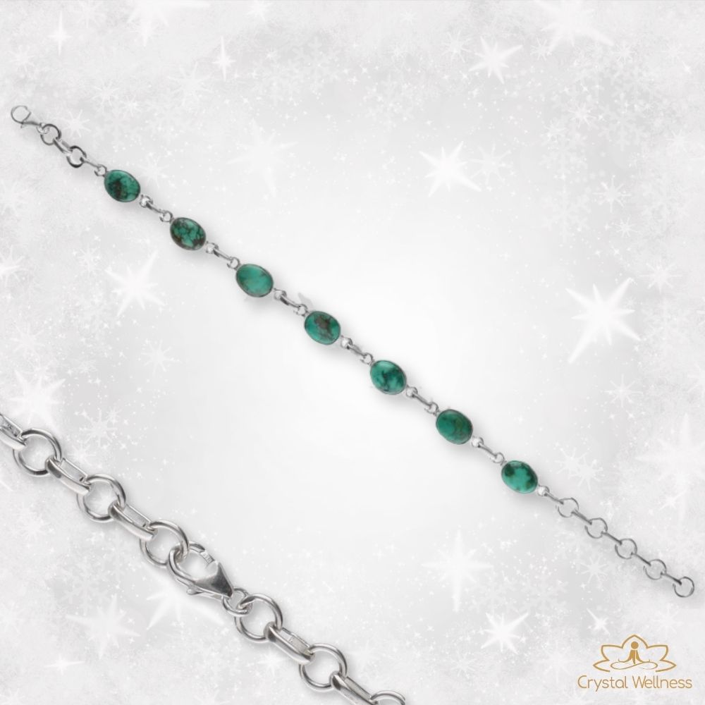 Apresentamos esta Pulseira Turquesa, uma joia que combina a beleza natural da Turquesa com a durabilidade e elegância da Prata da Lei. Cada pedra de Turquesa é cuidadosamente selecionada e combinada com detalhes delicados em prata esterlina genuína. Esta pulseira não apenas acrescenta um toque de cor vibrante ao seu visual, mas também é considerada uma pedra de proteção e equilíbrio. Adorne-se com a beleza intemporal da turquesa e a sofisticação da prata esterlina.