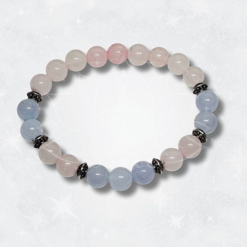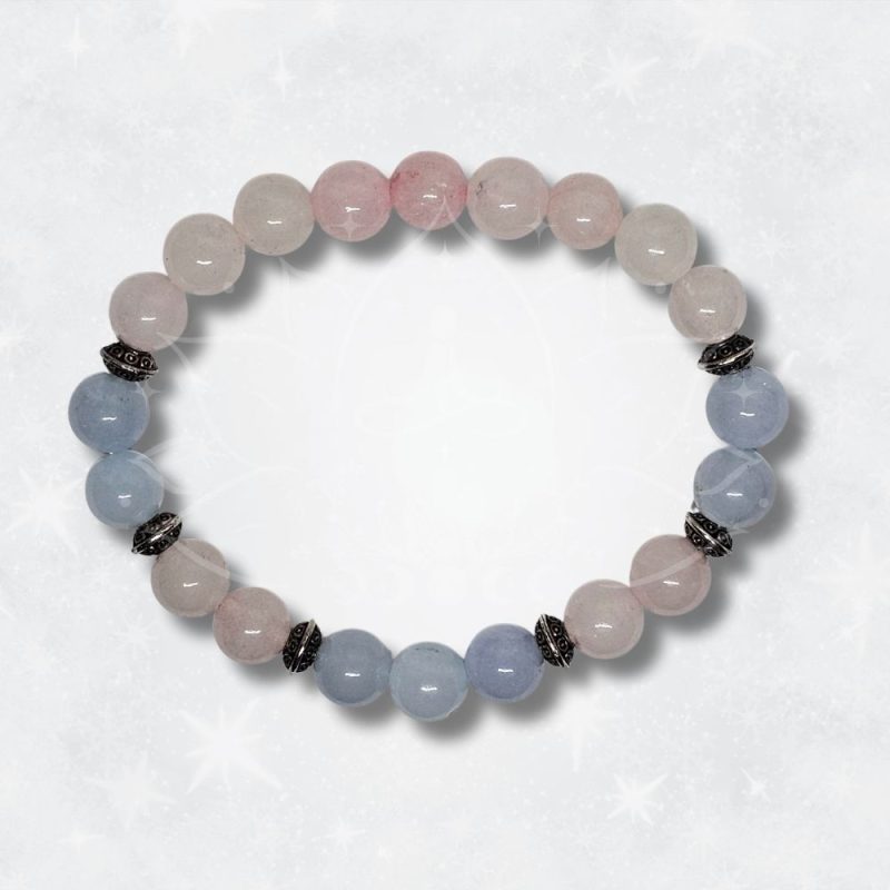 A pulseira de Quartzo Rosa e Água-Marinha combina a energia suave do amor incondicional com a vibração calmante da serenidade emocional. Esta união energética favorece a harmonia interior, a comunicação emocional equilibrada e a libertação de tensões, promovendo bem-estar emocional e espiritual.